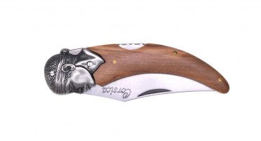 Recréé en collaboration avec des couteliers Corses, ce couteau berger est un couteau de bonne facture gravé "Corsica" sur la lame. Le Berger en Olivier a fière allure avec sa mitre en forme de "Tête de Maure" et son ressort guilloché. C'est un beau modèle classé Hors Série, bien fini il est très agréable en main. Un bon couteau de poche avec du style à offrir ou à s'offrir ! disponible également en bois de Noyer.